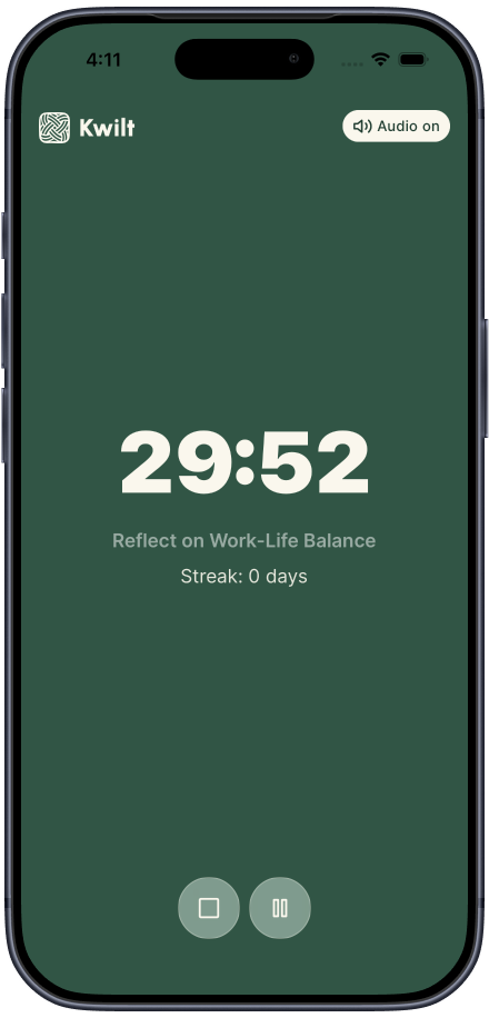 Attach a place to a daily activity. When you arrive or leave, Kwilt offers a simple check‑in—right when the moment naturally ends.